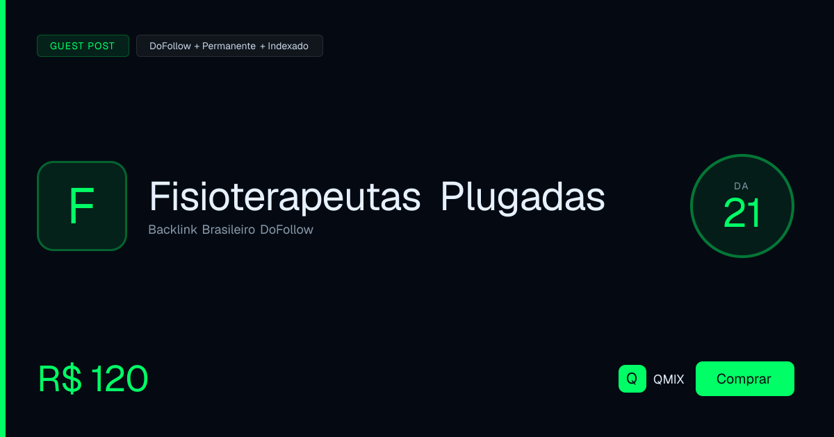Backlink dofollow permanente publicado no portal Fisioterapeutas Plugadas . Conteúdo original, indexação garantida pelo Google e entrega em até 7 dias úteis.