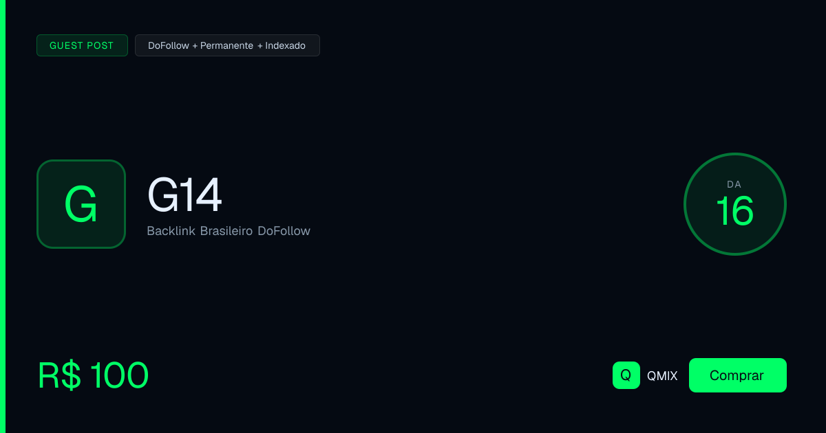 Backlink dofollow permanente publicado no portal G14. Conteúdo original, indexação garantida pelo Google e entrega em até 7 dias úteis.