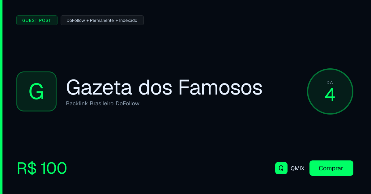 Backlink dofollow permanente publicado no portal Gazeta dos Famosos. Conteúdo original, indexação garantida pelo Google e entrega em até 7 dias úteis.
