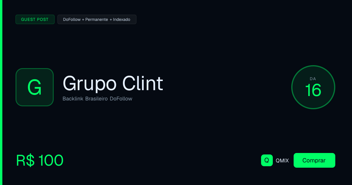 Backlink dofollow permanente publicado no portal Grupo Clint. Conteúdo original, indexação garantida pelo Google e entrega em até 7 dias úteis.