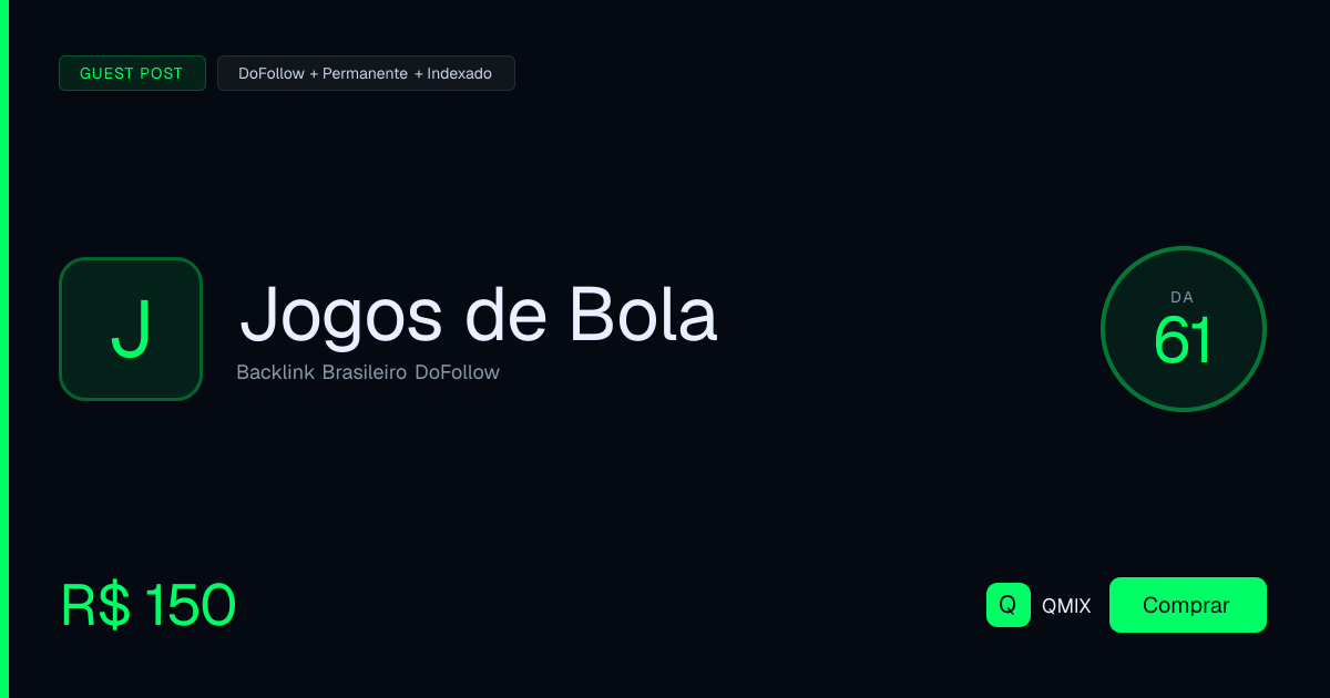 Portal esportivo de futebol com DA 61 e 2,9 mil visitas/mês. Link dofollow permanente, sem marcação de patrocinado — perfeito para nichos de esportes e entretenimento.