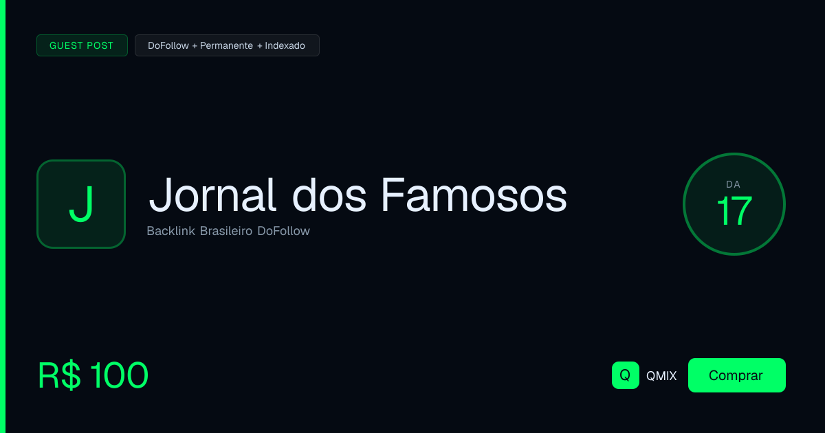 Backlink dofollow permanente publicado no portal Jornal dos Famosos. Conteúdo original, indexação garantida pelo Google e entrega em até 7 dias úteis.