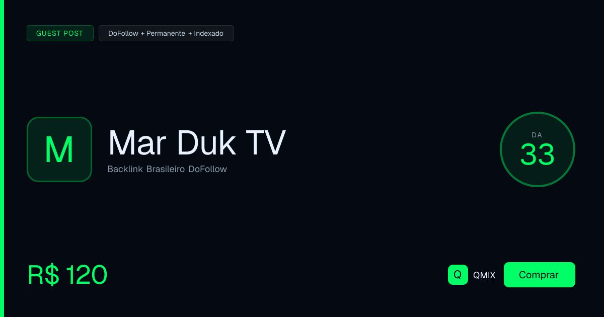 Backlink dofollow permanente publicado no portal Mar Duk TV. Conteúdo original, indexação garantida pelo Google e entrega em até 7 dias úteis.