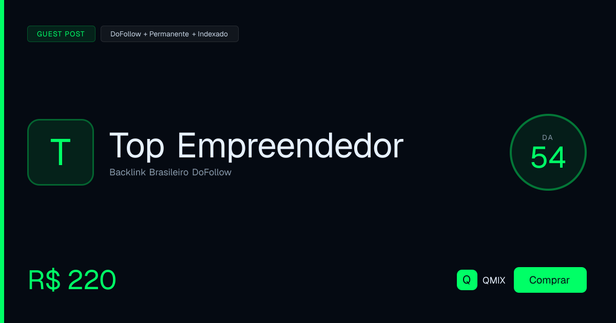 Backlink dofollow permanente publicado no portal Top Empreendedor. Conteúdo original, indexação garantida pelo Google e entrega em até 7 dias úteis.