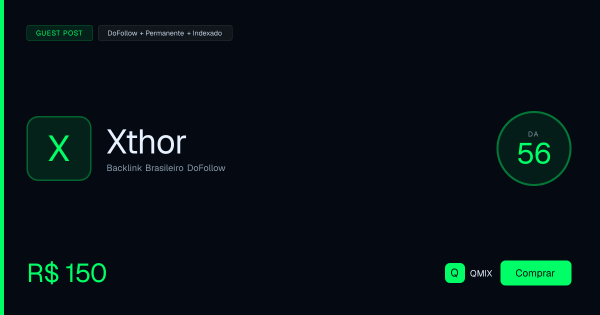Backlink dofollow permanente publicado no portal Xthor. Conteúdo original, indexação garantida pelo Google e entrega em até 7 dias úteis.